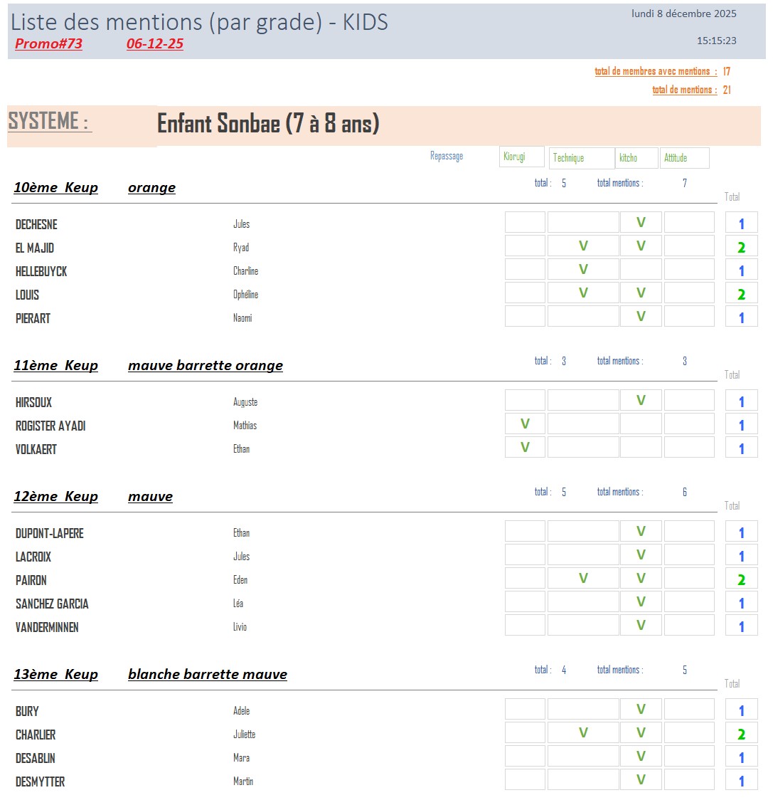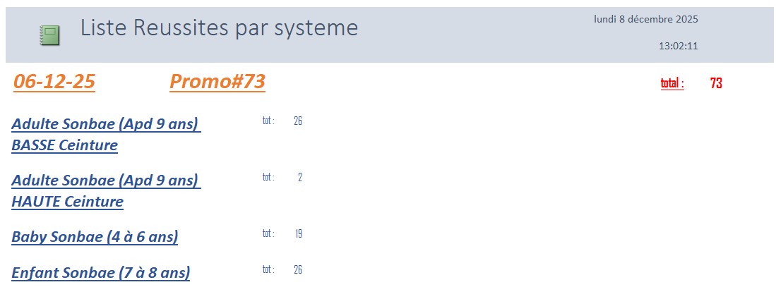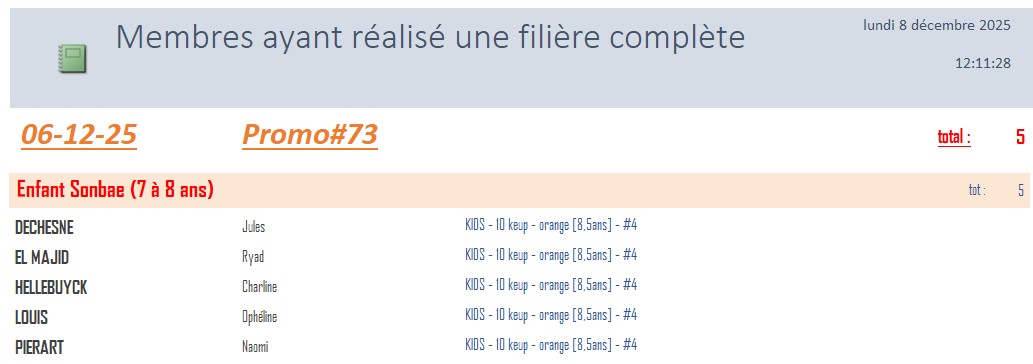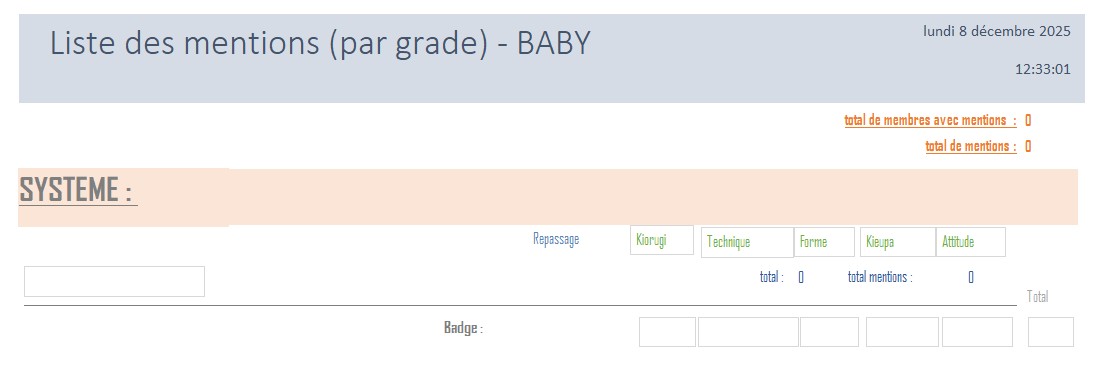 Le grade dans les systèmes BABY & KIDS est défini sur l’âge le jour du passage de grade .