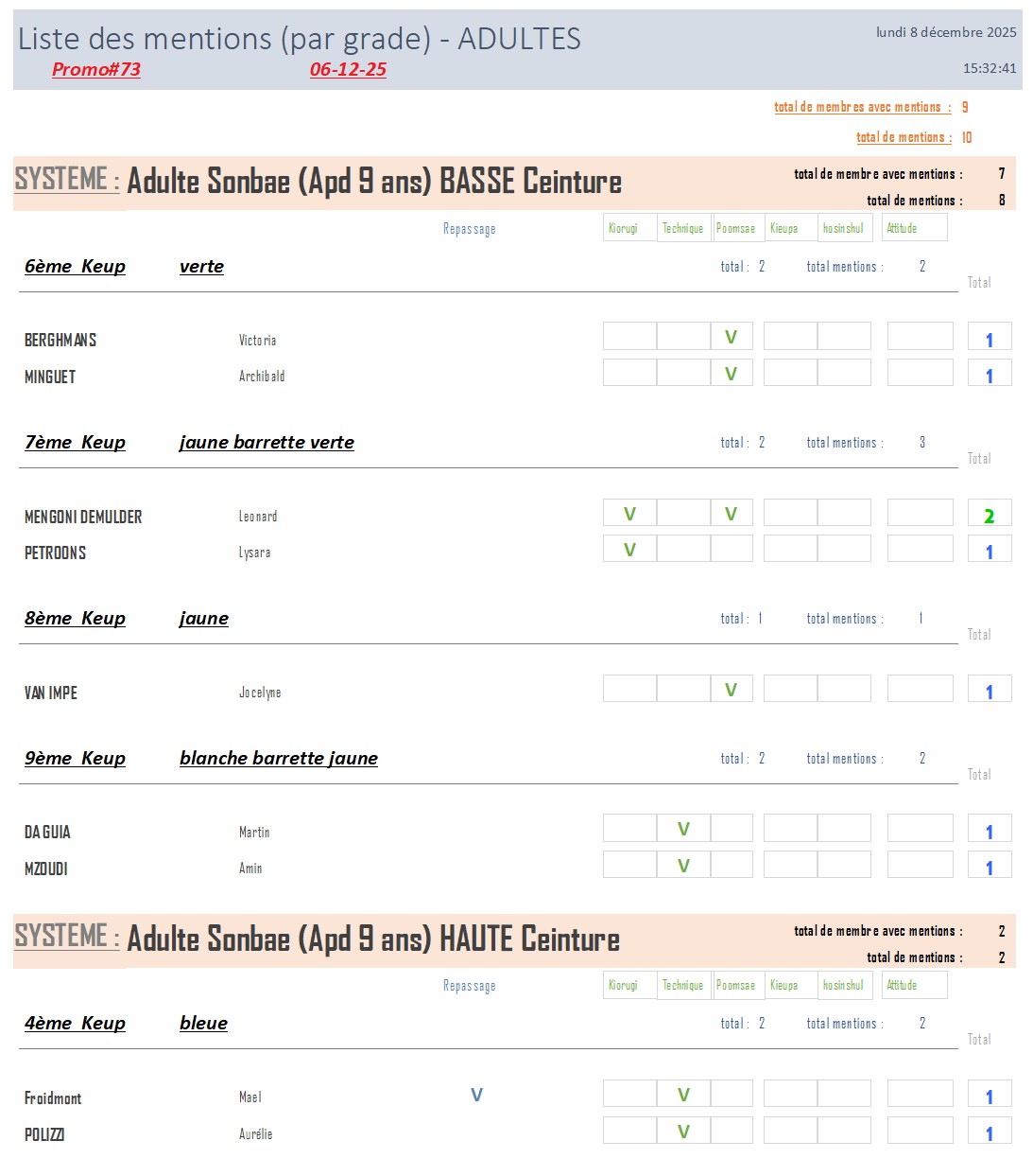 Promo#73 – 6/12. Les résultats